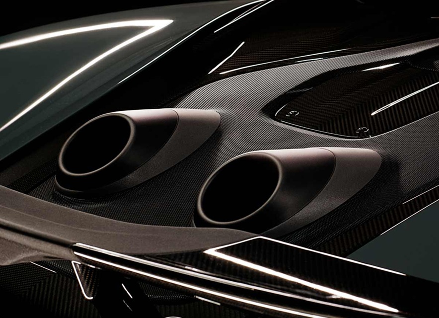 Extreme weight-saving measures were at the heart of the McLaren 600LT program from its outset, with a reduction of 211.6lbs against the DIN weight of a 570S Coupé targeted and achieved. Built using the lightweight carbon fiber monocoque chassis for which McLaren is renowned, the 600LT further benefits from new carbon fiber bodywork that lowers vehicle weight as well as optimizing aerodynamic performance. Unique top-exit exhausts ensure that the new LT model has a distinct aesthetic appearance that identifies it as something particularly special, as well as delivering a substantial weight saving and an incredible aural experience.