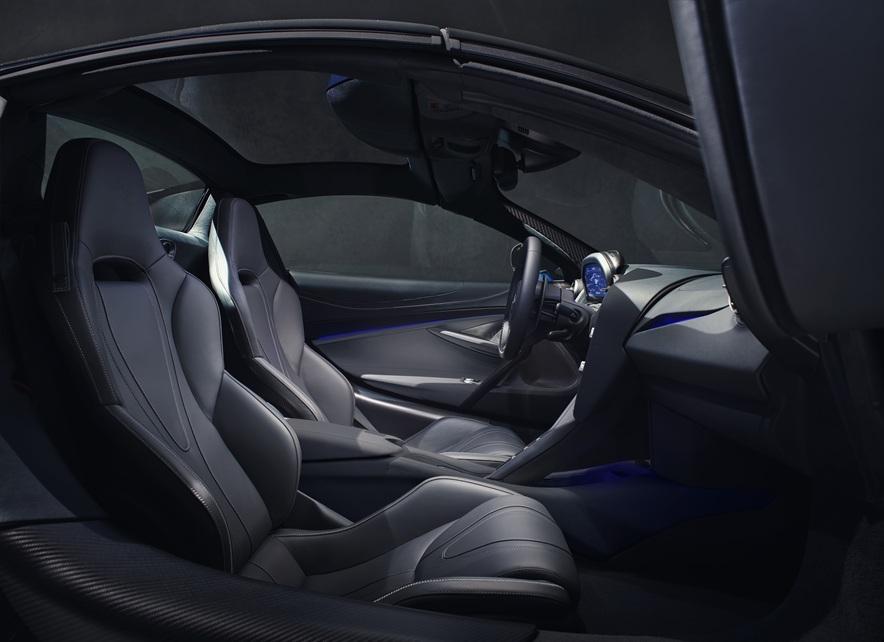 McLaren’s iconic dihedral doors and integrated active rear spoiler add our unique sense of racing theatre. Each piece is designed to take the driver’s breath away, even before the engine roars.